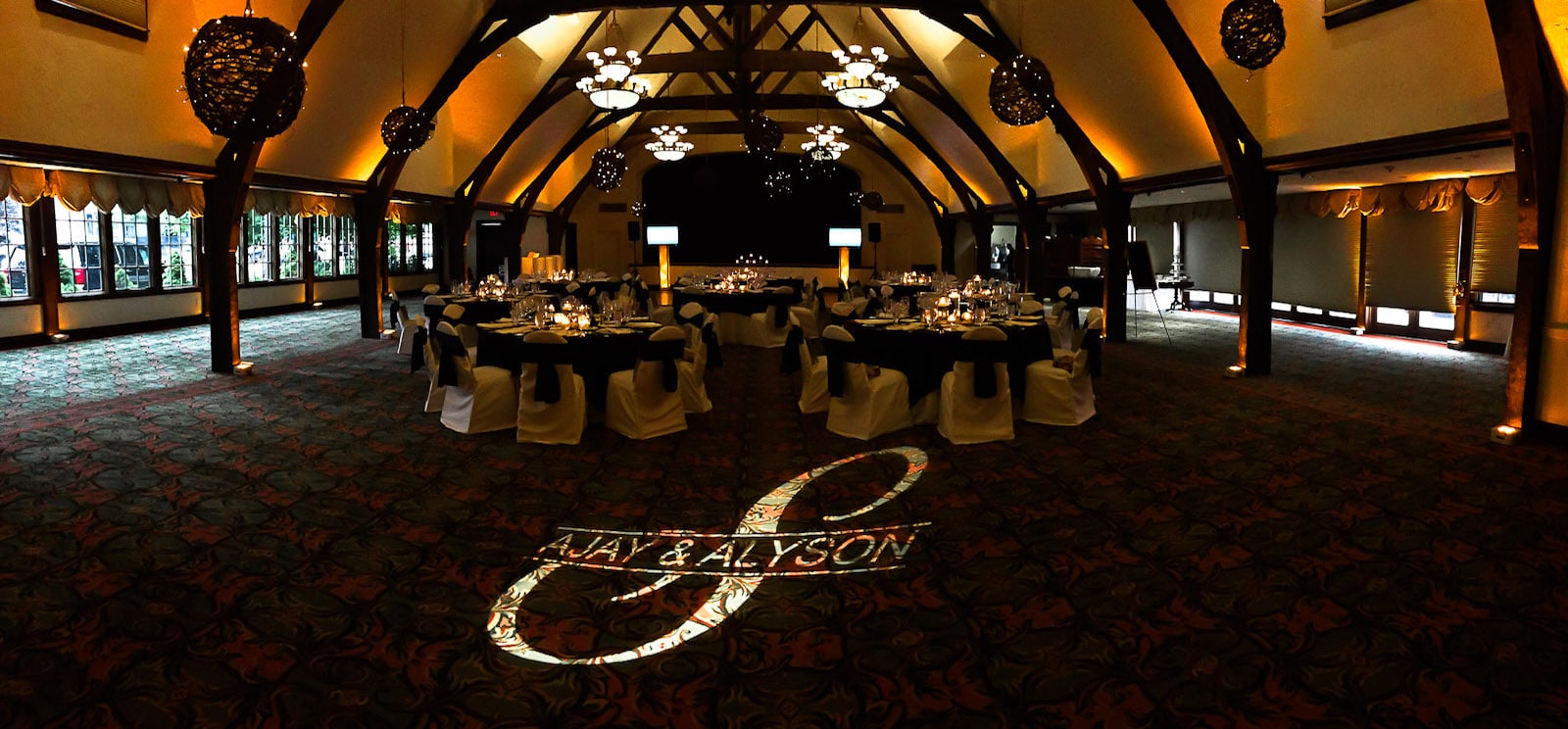Your monogram will be custom made and illuminated during the event. Monograms are commonly used to project: corporate logos or wedding dates and names. Your custom design can be projected on a blank wall, dance floor, drapery or stage. If you don’t have artwork already made, that’s okay. Let us tie the details together by designing the perfect monogram for your party.